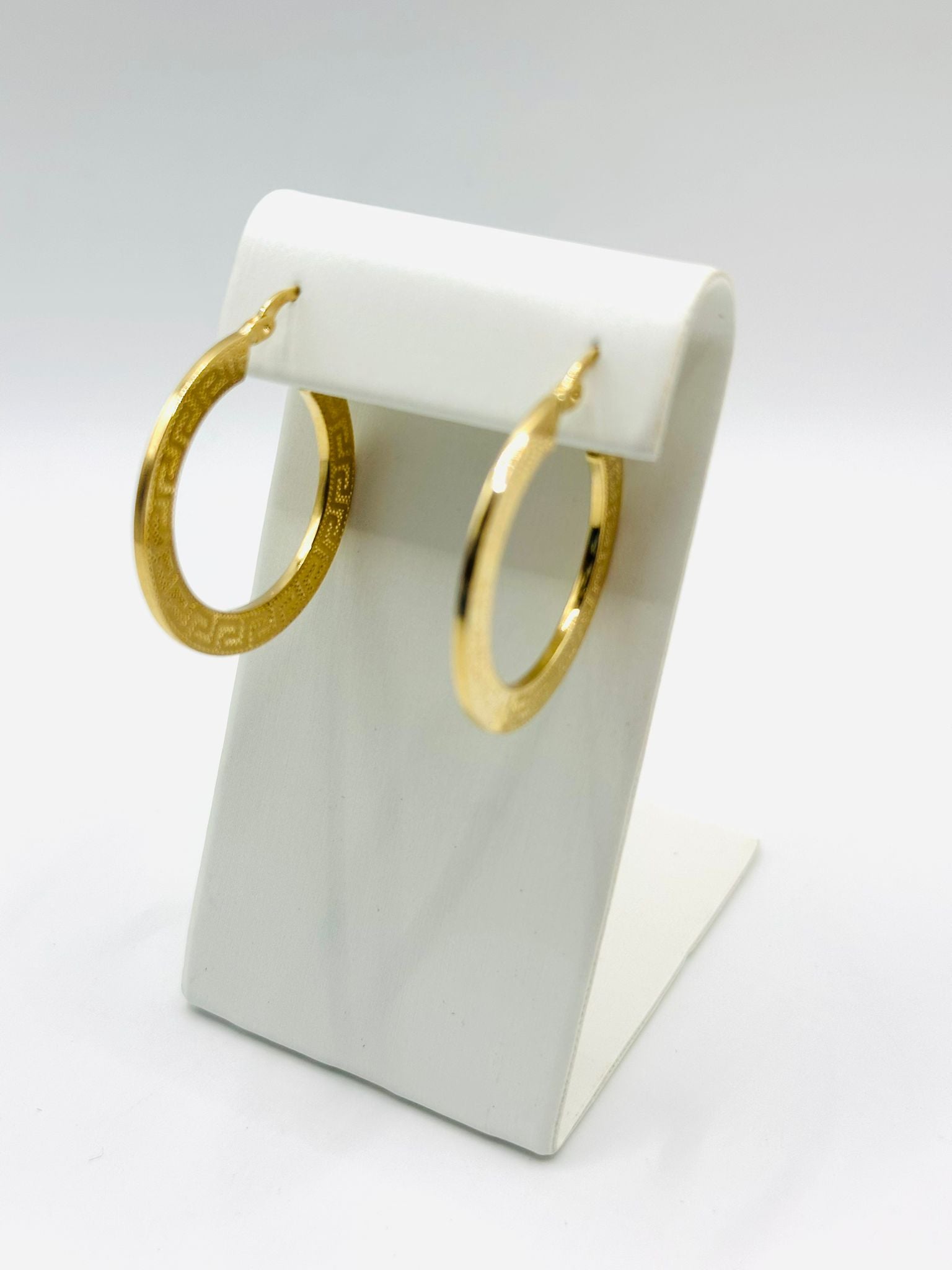 Designer Greek Pattern Women's Hoop Earrings in 10K Gold